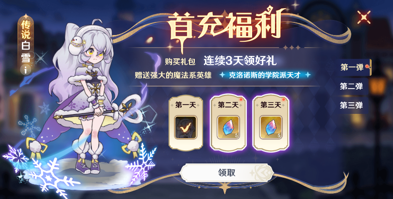 首日登录就送强大的魔法系传说英雄白雪,还有许愿石可得